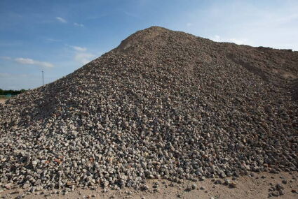 Auf unserem 60.000m² großen Recyclinghof bieten wir unterschiedliche Baustoffe an. Zum Beispiel wird mittels eines Backenbrechers der Bauschutt - wir unterscheiden in Beton und Ziegelrecycling - in die Körnung 0/56 Millimeter gebrochen.